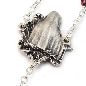 - Centerpiece featuring three-dimensional Immaculate Conception Heart among lilies, symbols of purity, antique silver plated finish