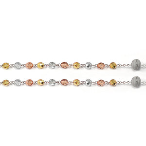 Beads: Bohemian glass faceted beads in 8 mm size with alternating mirror effect in the colors: pink, silver and gold. Genuine Murano blown glass accents in 10 mm size and satin grey veined-effect finish. Â