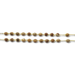 Round natural Jasper stone beads with gold-capped, in 8mm size, featuring a smooth, polished finish. Each bead showcases unique natural patterns and earthy tones.