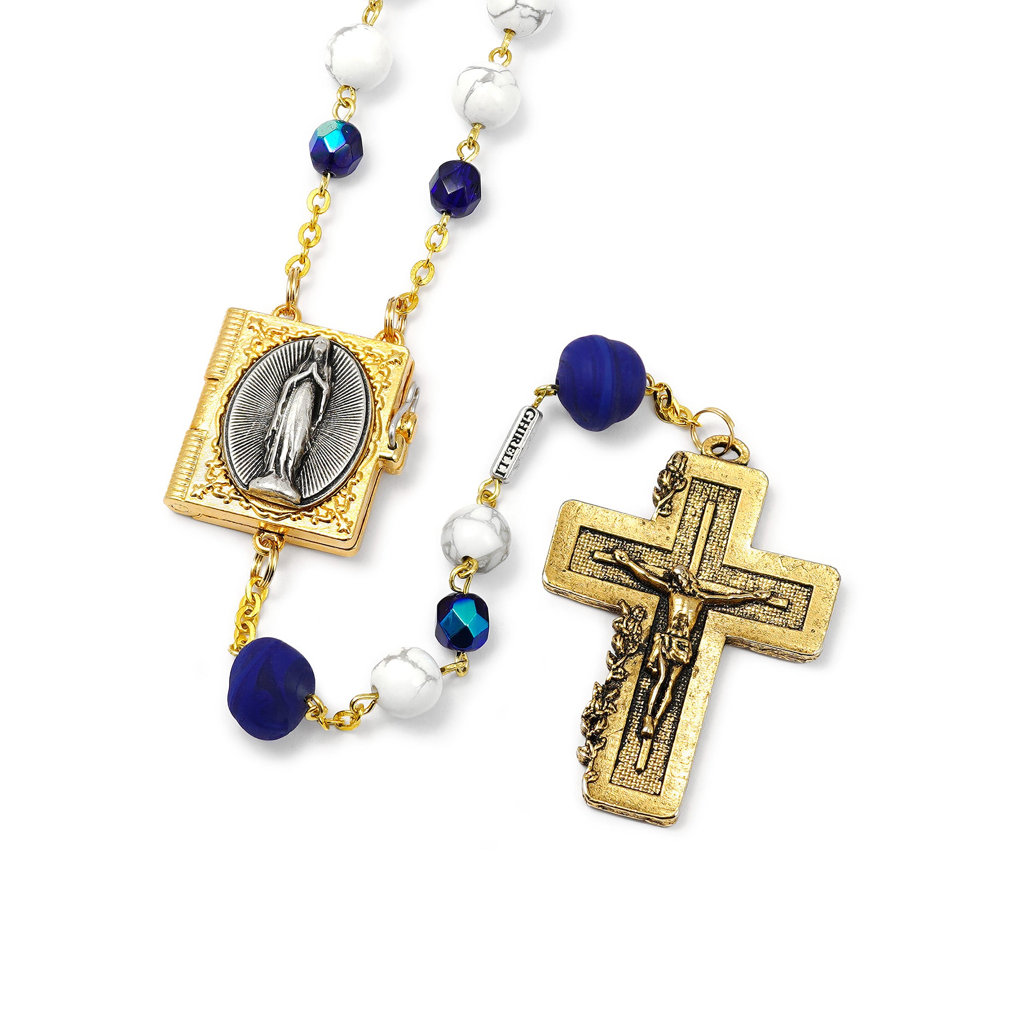 Lourdes Mysteries Booklet Murano Beads & Gold Rosary