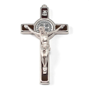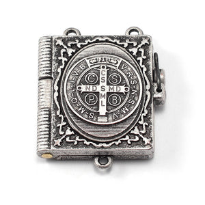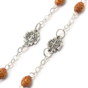 7x5 mm made in Italy wood beads - Our Father bead/Medal of Saint Benedict – exclusive design – antique silver plated finish - Silver plated finish with Ghirelli brand plate - Centerpiece Booklet/Medal of Saint Benedict in antique silver plated finish, inside the original Saint Benedict’s prayer in Latin - Crucifix/Medal of Saint Benedict in antique silver plated finish