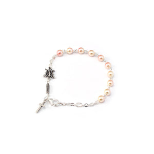 Our Father bead featuring the two letters "A" and "M" from the Latin "Ave Maria" - Miraculous Medal in the middle - antique silver plated finish;
