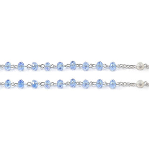 Beads: Crystal in 6x4 mm size and sapphire color, with 6 accent Our Father beads in silver-colored metallic diamond effect in 6mm size