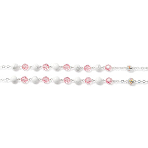 Aulite stones beads in 8 mm size, white with grey veins color. Swarovski 8 mm size Light Rose beads. Hand-made and hand-decorated 8 mm Lumen Beads.
