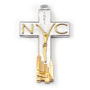 Crucifix: A unique and exclusive design dedicated to New York City. The arms of Christ rising from the skyline of the city take part in the initials "NYC". A unique treatment of the memory of the Twin Towers appears on the back.