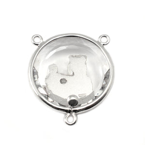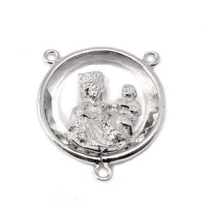 - Hand-made centerpiece with round shaped Crystal pendant hand-set within a 925/°°° Sterling Silver frame thick rhodium plated, in the middle an image of the Virgin of Paris (Notre-Dame de Paris) in 925/°°° Sterling Silver thick rhodium plated
