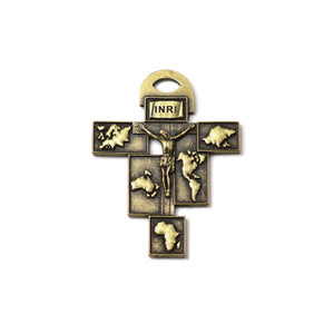 Continents are represented on the unique Crucifix, uniting them with Christ in the pain of wars, poverty, and persecution.