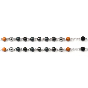 Italian Olivewood round beads in 8 mm size, semi-precious natural Hematite stone in 8 mm size, semi-precious Hematite hard stone in 8 mm size and Satin finish and hard stone beads in Agate Black and 8 mm size in Satin finish.