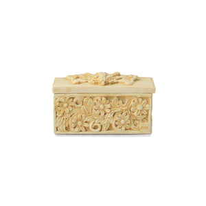 Rosary keepsake box in marble powder, reproduction of the sculpure present at the entrance of the Vatican Museums.