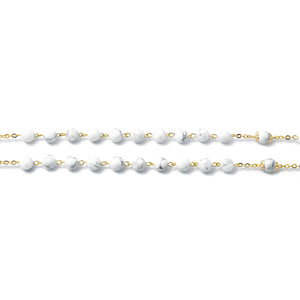 Aulite stones beads in 8 mm size, white with grey veins color. Gold plated finish with capped Our Father beads.