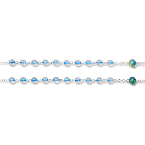 100% recycled glass Bohemian beads in 8mm size, inspired by the colors and hues of the sky and water, with tiny air bubbles inside that represent life in Creation, and 100% recycled glass Bohemian beads in 10mm size artfully shaped by shades inspired by the colors of nature.