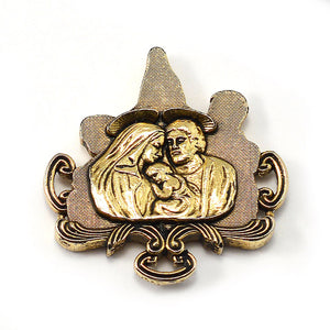 A Centerpiece that praises the beauty of prayer within the Family. On the back is a reproduction of the Holy Family, an example of every Christian family.