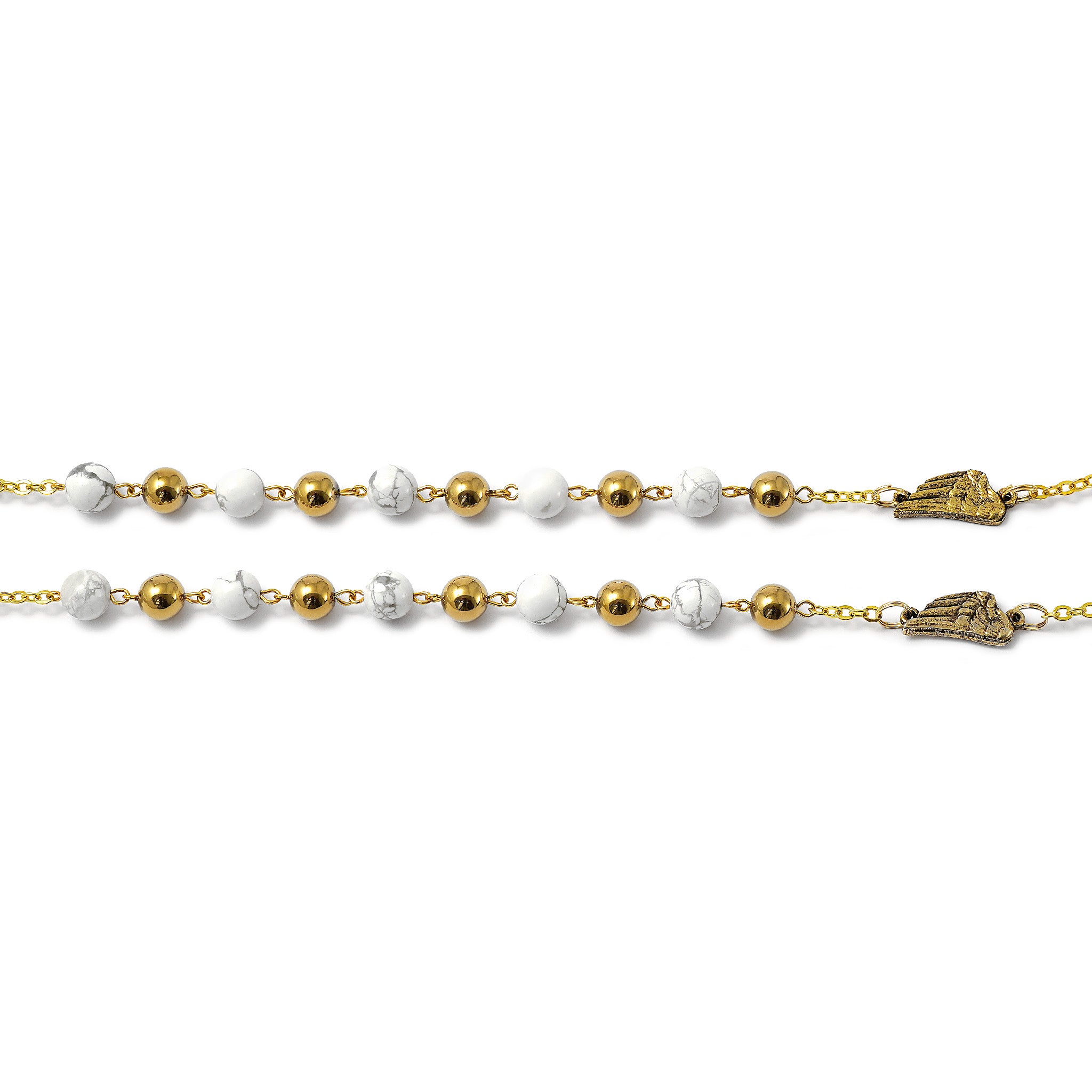 Aulite stones beads in 8 mm size, white with grey veins color alternating hematite natural stone in 8 mm size in gold polish finish beads. Hand-decorated 8 mm size Lumen beads.
