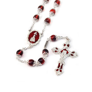- Centerpiece with Our Lady of the Rosary, hand-enameled inserts; polished silver plated finish