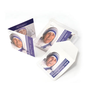 GhirelliĀ® honors the Church's newest Saint, Mother Teresa of Calcutta. This exceptional rosary is unique in every aspect: the placement of the Ave Maria beads, the depiction of Teresa's selfless act of charity on the Crucifix, her familiar image on the Centerpiece, and more. 6mm Bohemian blue and white glass beads, carefully positioned to replicate her ubiquitous habit. The Crucifix and Centerpiece present blue enamel inlay. In Antique Silver finish. Also includes a white leatherette pouch, with Mother Teresa's image imprinted on the front, as well as a small brochure insert showing the inspirational text appearing on both the Crucifix ("A Little Pencil In The Hand of God") and the Centerpiece ("It is not how much we do, but how much love we put into what we do.")