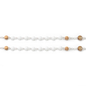 The 6mm white glass beads represent the purity of St. Joseph.