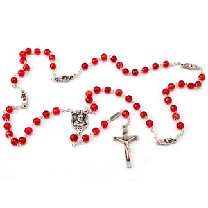 6 mm glass beads - Our Father beads in antique silver plated finish, reproducing the Hands of Saint Pio with hand-enameled red stigmata - Silver plated finish with Ghirelli brand plate - Centerpiece Saint Pio and Mosaics of the Church “Our Lady of Graces”, among ears of corn, inspired by the Eucharistic Bread, antique silver plated finish - Crucifix in antique silver plated finish, perfectly reproducing the Cross in front of which Saint Pio received the stigmata. The Body of Christ features the five wounds in a red, hand-enameled finish.
