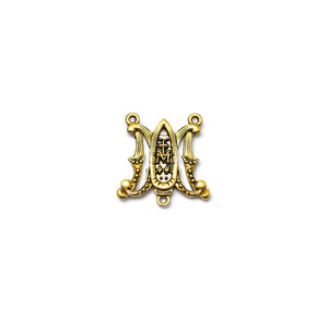 Centerpiece featuring the two letters “A” and “M” of the Latin “Ave Maria”. Miraculous Medal in the middle, antique gold plated finish.