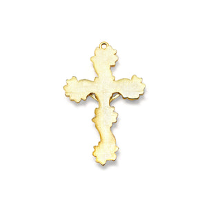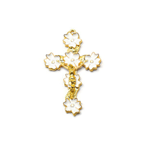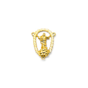 Resurrected Jesus surrounded by a crown of Lilies, polished gold finish with entirely hand enameled details.