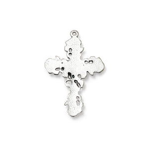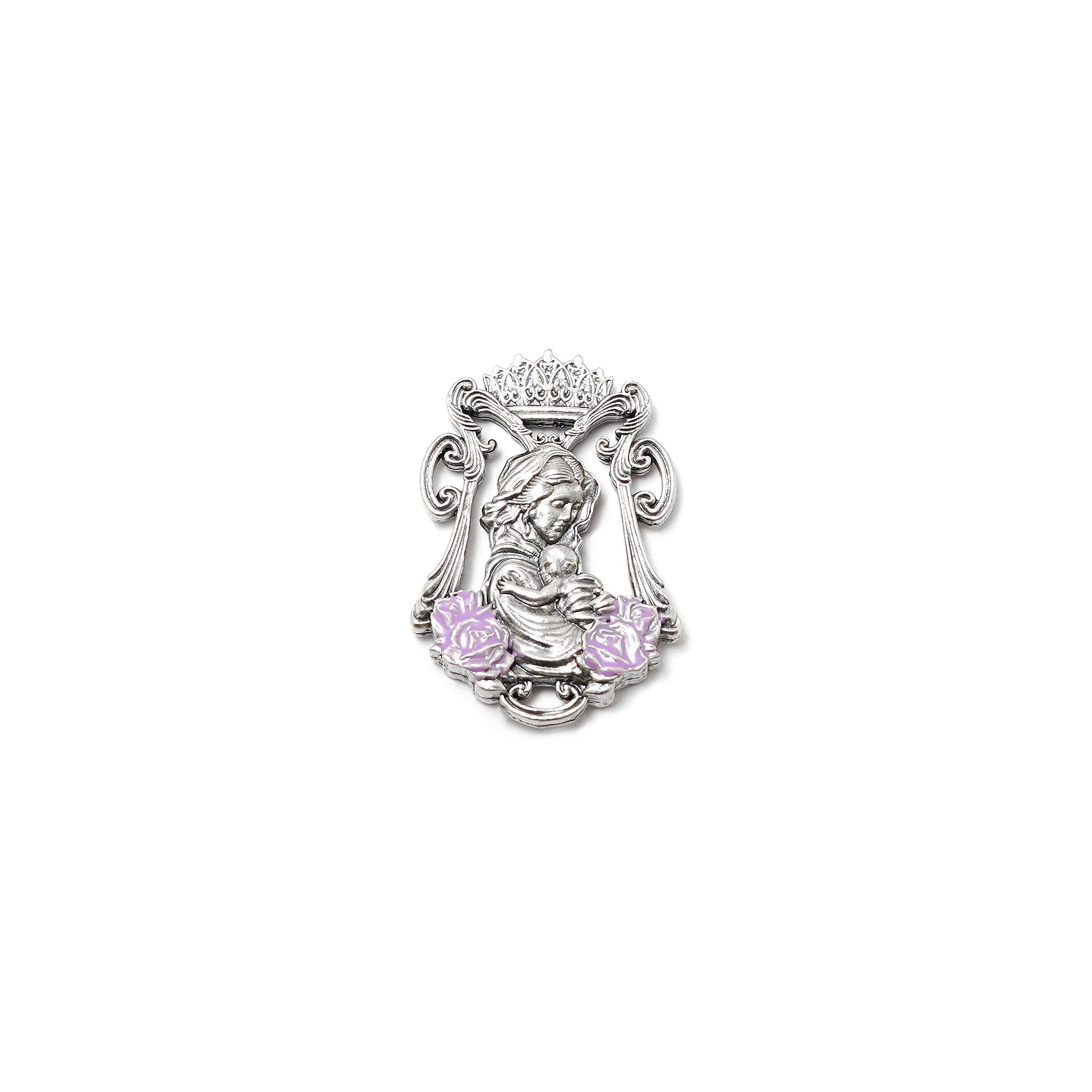 Jesus Crucified on a bed of beautiful roses, carved and cared for in every detail with light violet hand enamel.