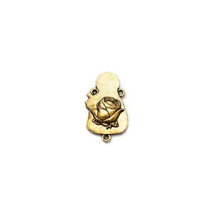 A beautiful portrait of Saint Thérèse of Lisieux, with great attention to detail. In antique gold plated finish. On the back a beautiful rose. On the back is a beautiful embossed rose.