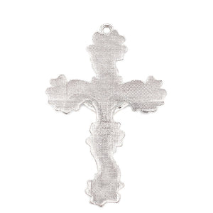 - Crucifix with lilies, polished silver plated finish with hand-enameled inserts
