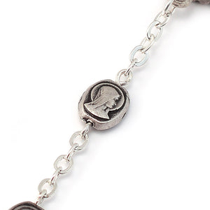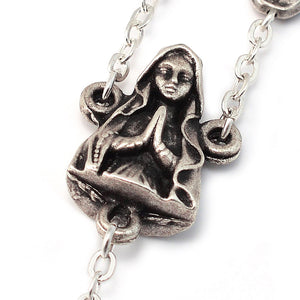 8x6 mm metal beads featuring the Lourdes Apparition and on the reverse side the āVirgo Mariaā face - antique silver plated finish - Silver plated finish with Ghirelli brand plate - Centerpiece in the shape of a three-dimensional bust of the Immaculate Conception with the Lourdes Grotto on the reverse side - antique silver plated finish - Baroque style crucifix in antique silver plated finish