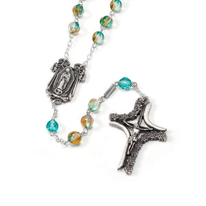 Beads: Bohemian glass in 8mm size and multicolored beads, with faceted Bohemian glass accent beads in 8 mm size and aquamarine color.