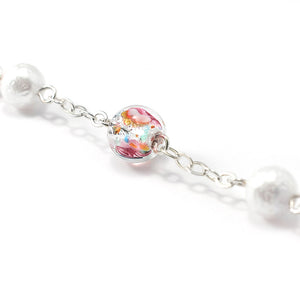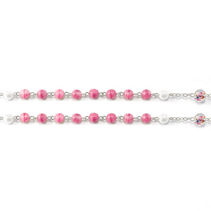 Beads: Bohemian glass beads in 8 mm size in pink gradient color, with accent Bohemian glass beads in 8 mm size and white color with ice/frosted effect. Our father beads are hand-decorated 8mm Lumen Beads