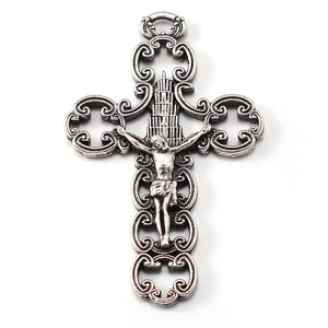 Crucifix: An original design and inspired by the famous candelabrum in the center placed in front of the actual Grotto at Lourdes