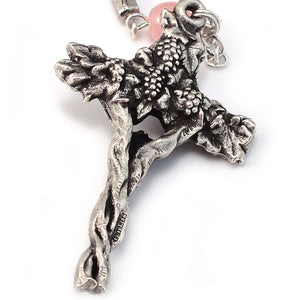 - Crucifix inspired by the Gospel passage “I am the vine; you are the branches” John 15:5 with grapes and leaves , antique silver plated finish
