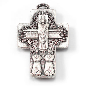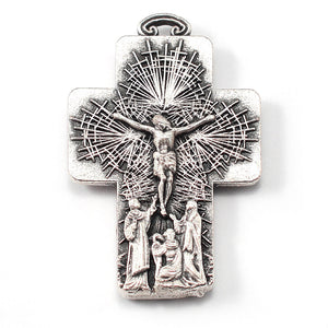 Crucifix: The front depicts Jesus dying on the cross at Golgotha and on the back, the Eucharistic Jesus whose sacrifice/frosted  is re-presented at every Holy Mass