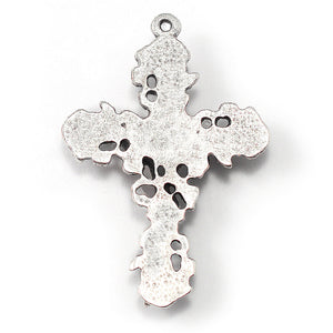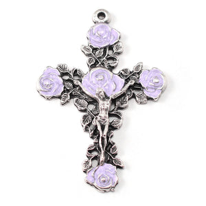 Crucifix: Jesus Crucified on a bed of beautiful roses, carved and cared for in every detail with light violet hand enamel