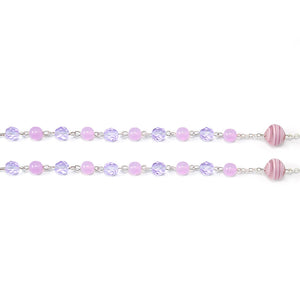 Beads: Bohemian glass beads in 8 mm size and lilac pastel color, and Bohemian glass faceted 8 mm size beads in lilac color. Genuine Murano blown glass accent beads in 10 mm size with a satin finish in veneered lilac color