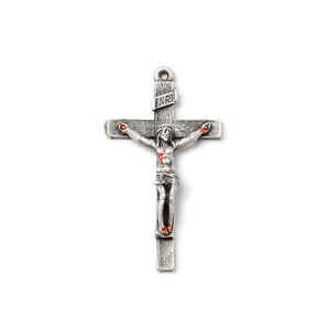 The special Crucifix is a perfect reproduction of the Cross where Saint Pio received the stigmata. The Body of Christ features the five wounds in a red, hand-enameled finish.Ā