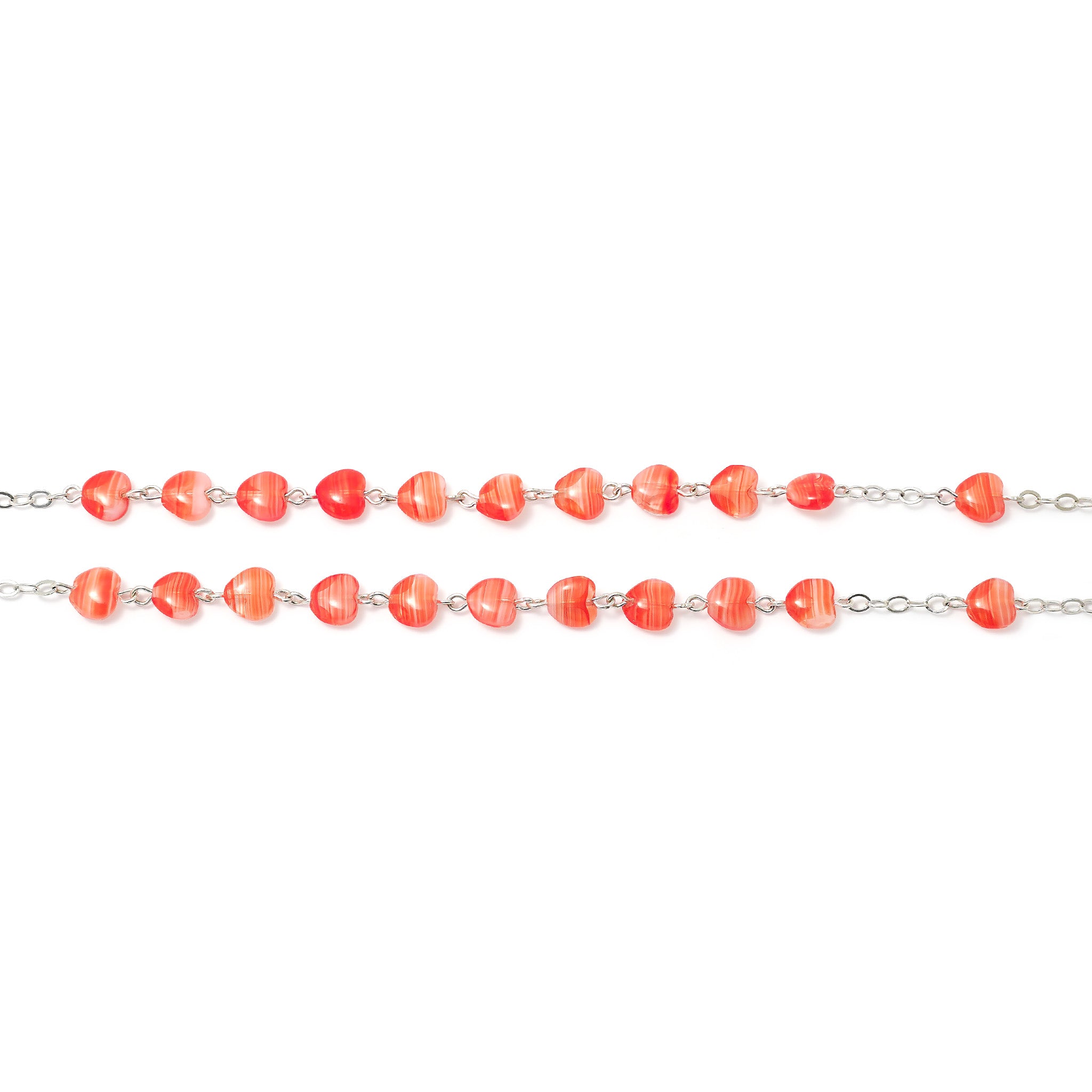 8x8 mm Bohemian glass heart-shaped beads with blended colors.