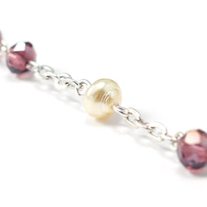 Beads: Faceted Bohemian glass Crystal beads in 6x4 mm size and Amethyst color. With Accent Bohemian glass beads in 6 mm size and ivory/pearl color.