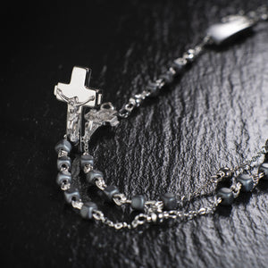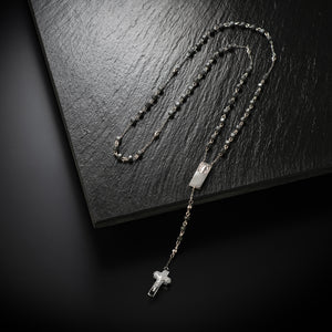 The look and comfort of a traditional Rosary, the iconic Cross-Closure, the charm and elegance of a one-of-a-kind jeweled necklace.