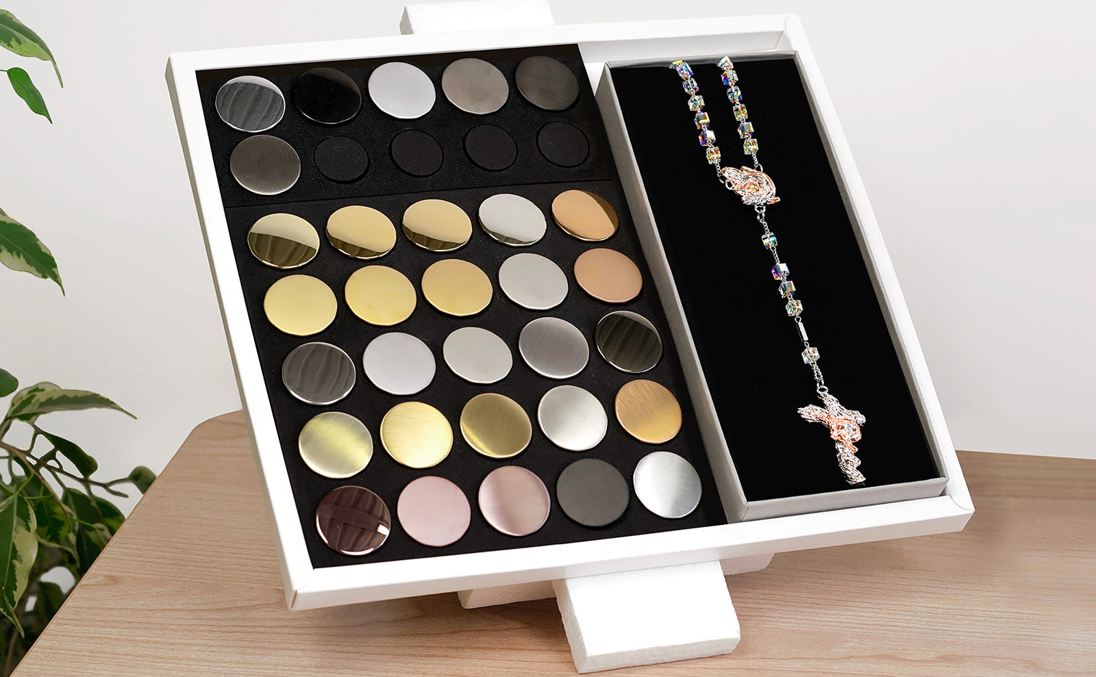 contact usWith the Tailor Made program every Rosary begins with a story: yours. Through a fully tailored creative process, you can select — or even design — every single component: from the Crucifix and Centerpiece to the spacer Medals, finishes, and Beads. Each element is meticulously designed, crafted, and produced in Italy, at the heart of the Ghirelli® Centro Stile, bringing to life a sacred work of art that truly represents you. It’s not just a Rosary — it’s your Rosary. Get ready to shape your dream into reality.