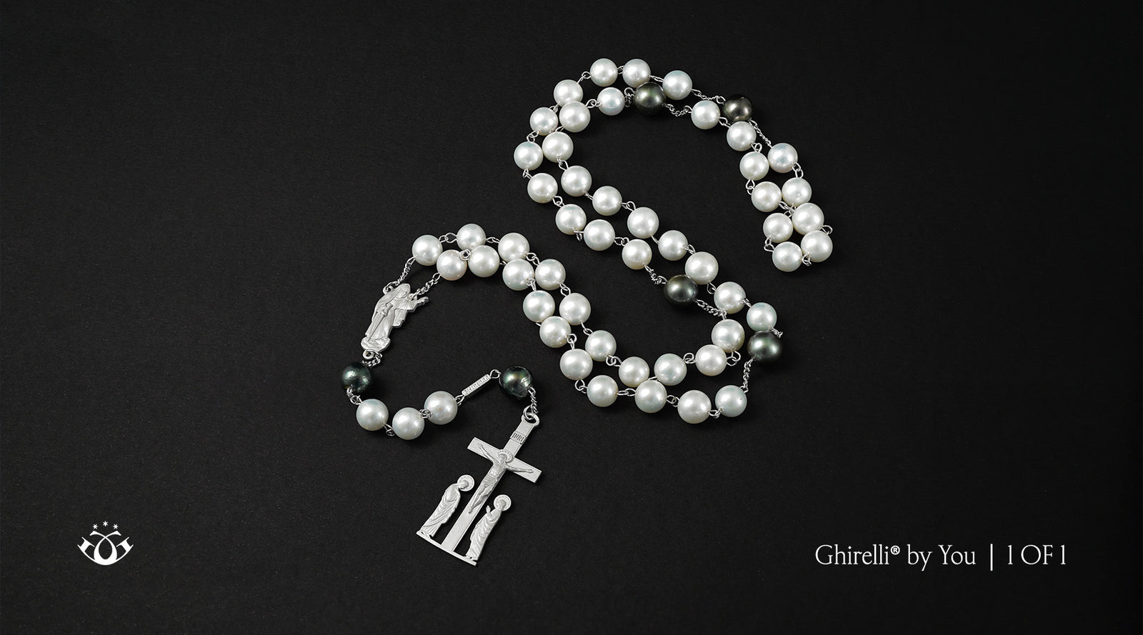 Ghirelli® Tailor Made is not just customization. It is the creation of a 1 of 1 Rosary, made exclusively for you — an immersive journey that deepens your connection with the Ghirelli family and celebrates spirituality through sacred art. An exclusive and meaningful experience that transforms your Rosary into more than a symbol of faith — it becomes a reflection of your identity, your love, and your personal style.